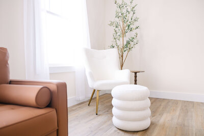 The photography studio is in the perfect spot—easy to find with super convenient parking, which makes the whole experience stress-free right from the start. The space itself is beautiful and welcoming, and having Haley available on-site for hair and makeup is such a game-changer. She makes you feel polished and confident before you even step in front of the camera.